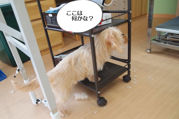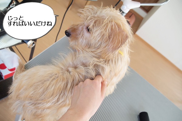 トリミングテーブルの上では、じっとすればいいことに気付いてくれました。