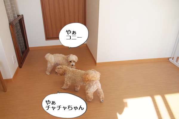 看板犬コニーと仲良くしてくれるチャチャちゃん。