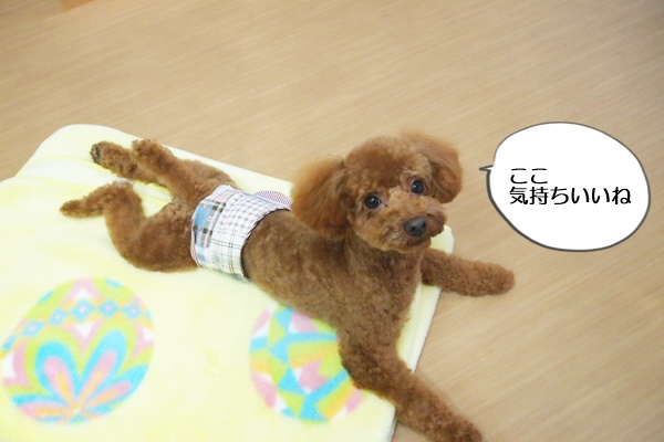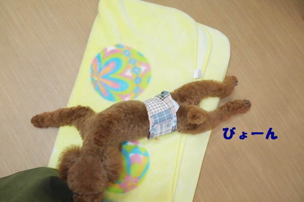 ポコちゃんは、この毛布が気に入ったのか、ものすごくリラックスした体勢に。