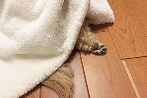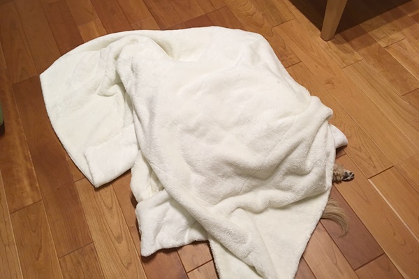 毛布でゆっくりするのかと思いましたが、この後、元気よく歩きまわってましたよ。