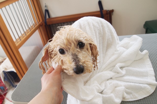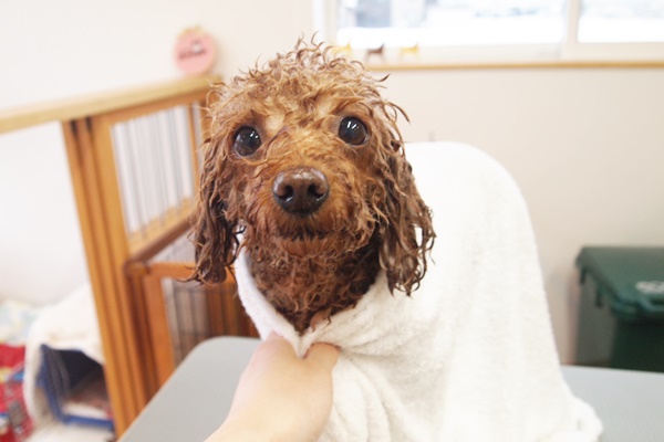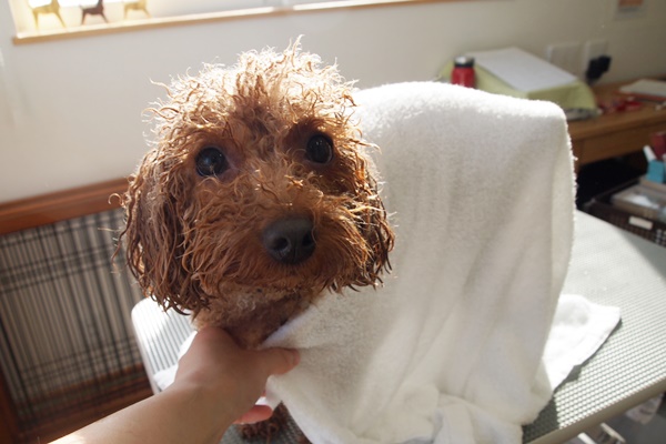 前回トリミングから3週間なので、今日はシャンプーコースです。