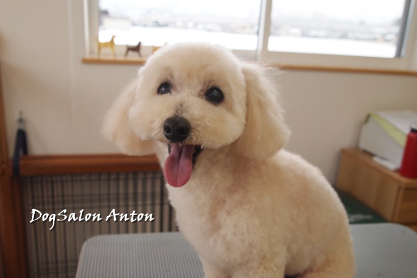 朝一で来てくれたのは、トイプードルのモモちゃんです。