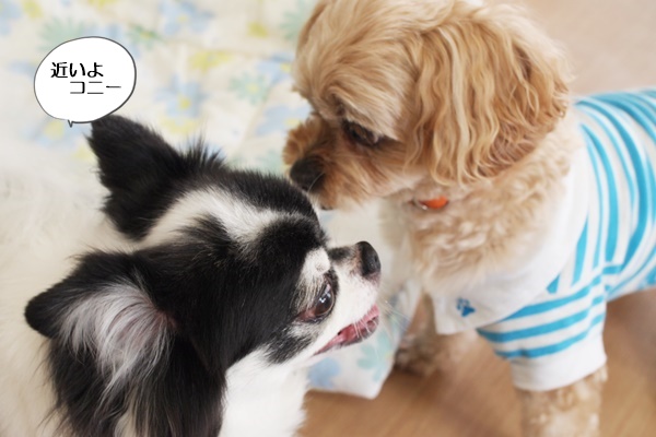 看板犬コニーは、他のわんちゃんと遊ぶことはめったにないのですが、今日は遊ぼうと誘っていました。