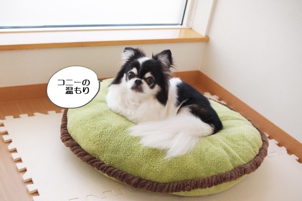 待っている間は、ハウスの中か、座布団の上。