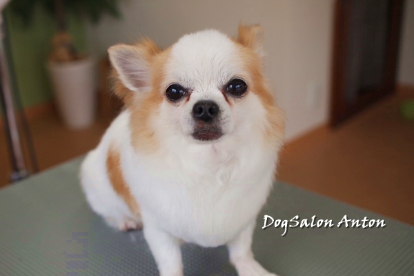 元々、お家でお顔をカットされていたので、お顔はちょっと揃える程度に。