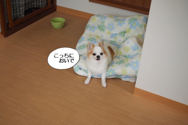 私が布団の所に出向くと甘えてくれますが、ジャムちゃんはここから動こうとはしません。