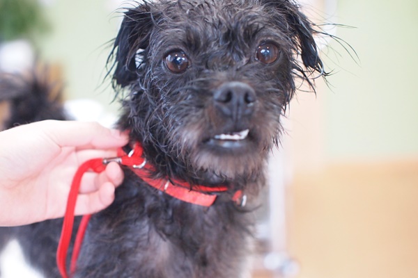 コチラで用意している首輪とリードを付けてのブロー~カットです。