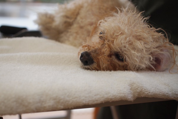 シャンプー後のブローはいつも寝かせてやらせてくれます。