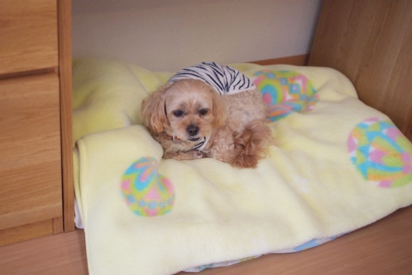 座布団に誘導すると、ようやく落ち着いてくれました。