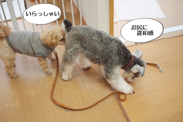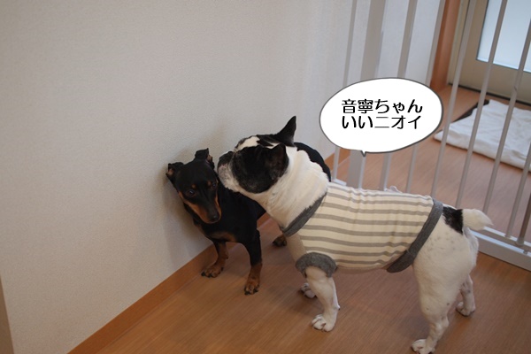 はなちゃんは音寧ちゃんが好きなもんだから、ニオイを嗅ぎに近づいていました。