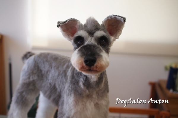 朝一で来てくれたのは、ミニチュアシュナウザーのウィンちゃんです。
