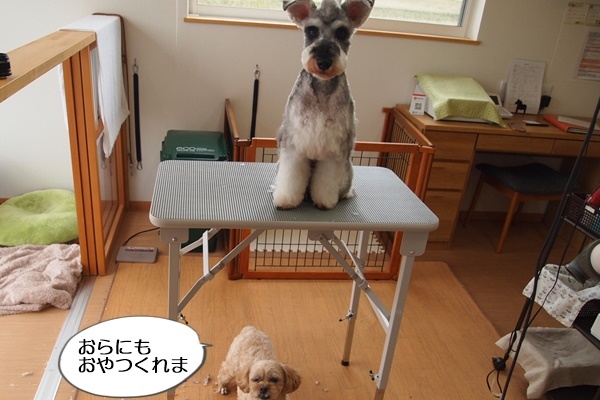 トリミング前に見つかると興奮してしまうので、ウィンちゃんが来る前に隠しておきました。