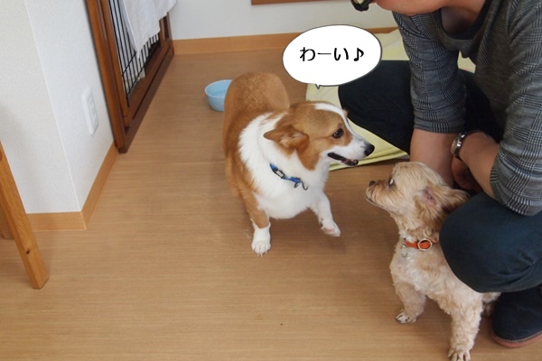 おやつがあると、2頭とも目がきときとになります。