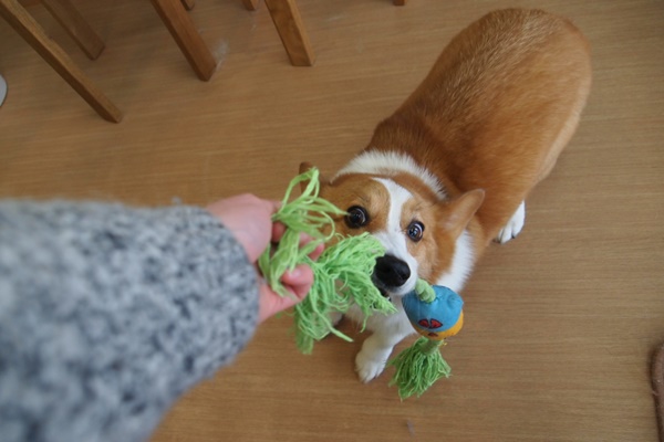 1人で遊ぶより、引っ張り合いっこが好きなんだよね。