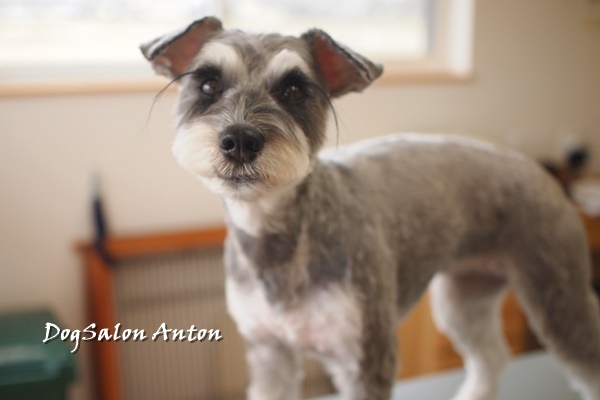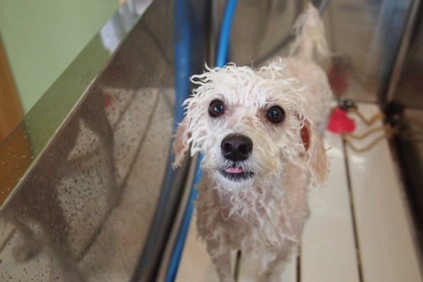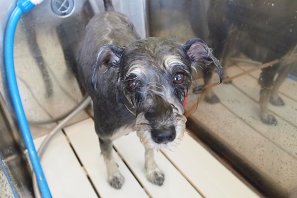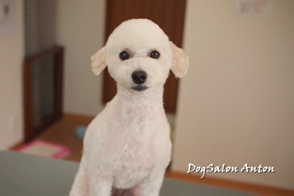 マハロちゃん、シャンプーブローをして真っ白になりました。