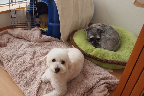 ミニチュアシュナウザーの福ちゃん&トイプードルのマハロちゃん