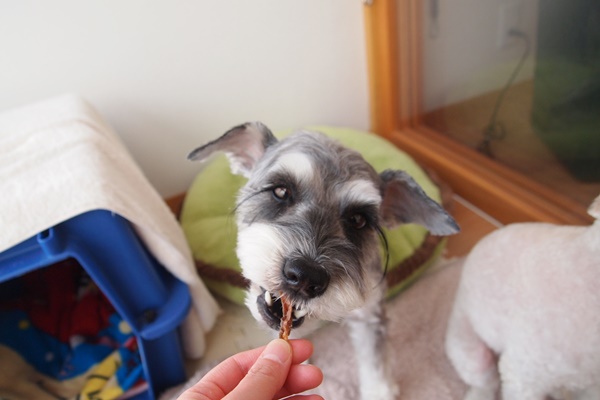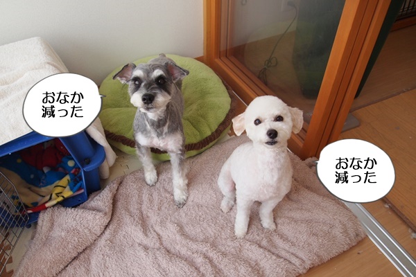 待っている間は寝ているのに、おやつの袋の音がすると急に目が輝きだす2頭。