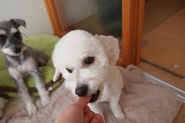その後も見事にお座りをして、おやつをおねだりしていました。