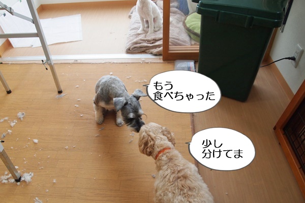 他2頭は「取られた」と目で訴えてきますが、無理に奪おうとはしません。