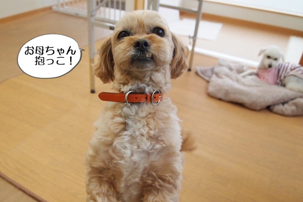 身軽なトイプードルの子は、自力でジャンプして膝に乗ることもできますが、コニーは5㎝もジャンプできません。