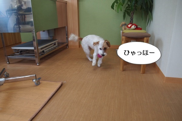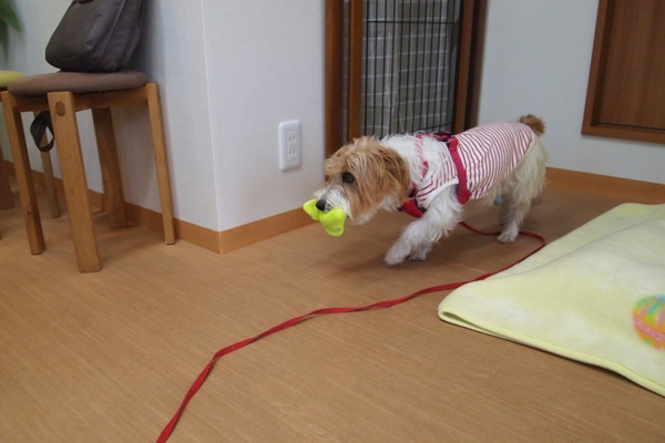 楽しそうにくわえながら、うろうろ。
