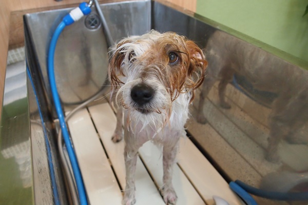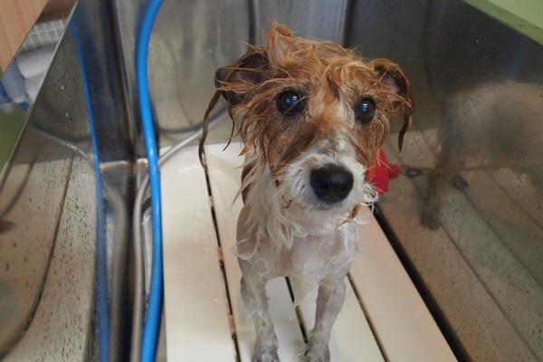 おやつを見せた隙に放したので、すぐに隠して、何事もなかったようにシャンプースタートです。