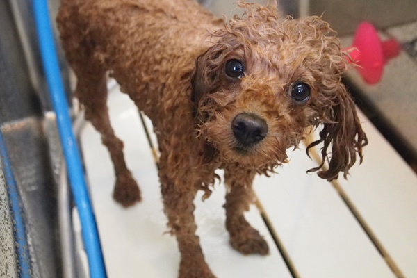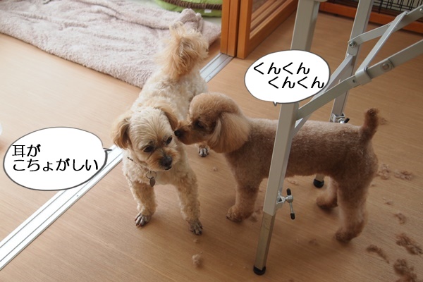 床の上にいる時は仲良く遊んでいるのに、トリミングテーブルの上では仲が悪いんです。