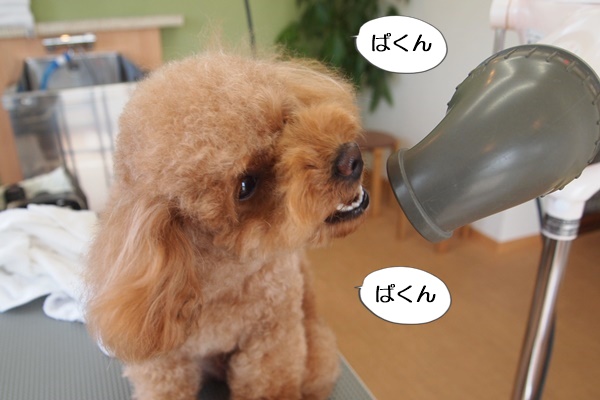 いつもドライヤーの風にケンカを売っているももちゃん(笑)。