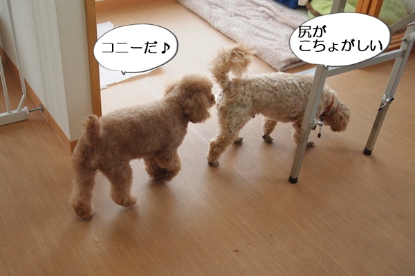 ずっとお尻のニオイを嗅ごうと、コニーの後をついていってました。