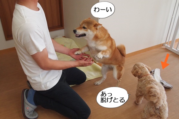 ドンちゃんは咬まないから大丈夫!と主人に伝えているのですが、ちょっと脅かされると腰が引けてしまったみたいです。