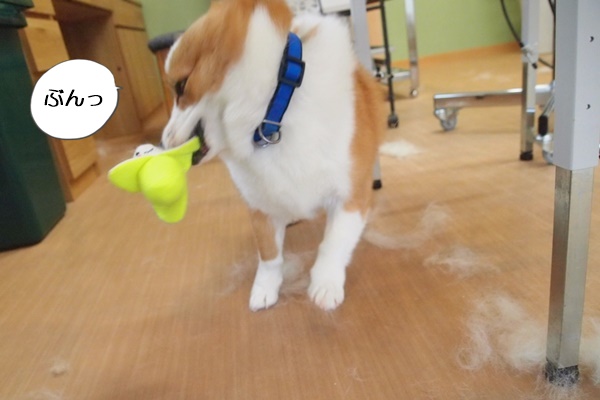 下に落ちている毛なんて全然気にすることなく、おもちゃで遊び始めました。