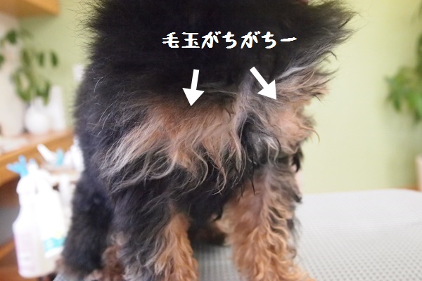 お家でシャンプーをして、きれいにブラッシングしないまま乾くと、フェルト状のガチガチの毛玉になったりします。