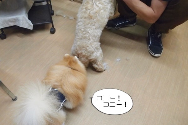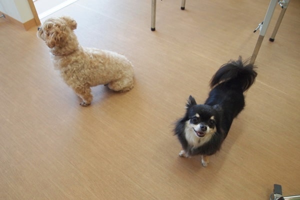 シェリちゃんとポコちゃんは仲良くニオイを嗅ぎ合っていました。