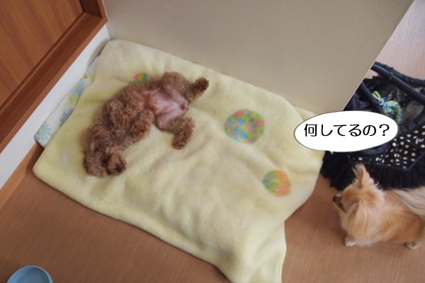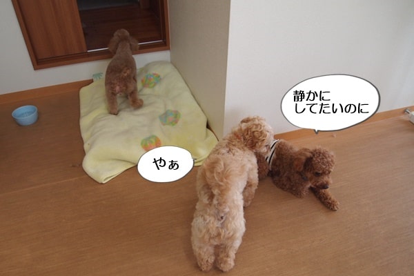 ももちゃんは一生懸命遊びに誘っているのですが、ポコちゃん動じず。