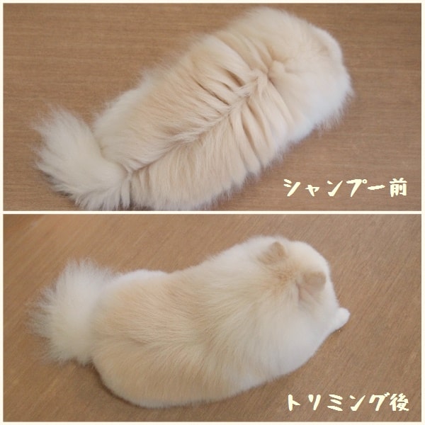 ちなみに下の写真は、レオちゃんのシャンプー前とトリミング後です。
