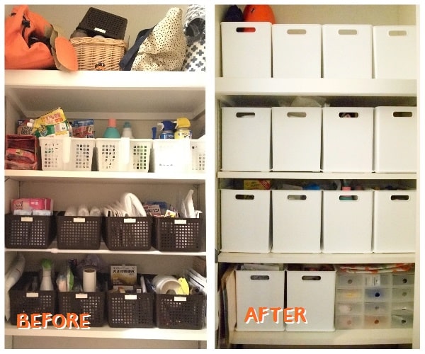 以前もそれなりに整頓を心掛けていましたが、白に統一して中身が見えないようにしただけで、大分スッキリしました。