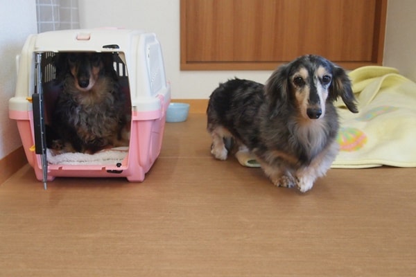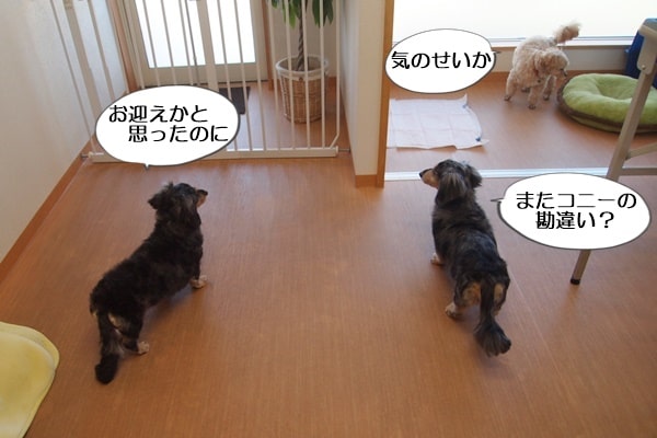 お迎えが来るかどうか、常に気になっている2頭。