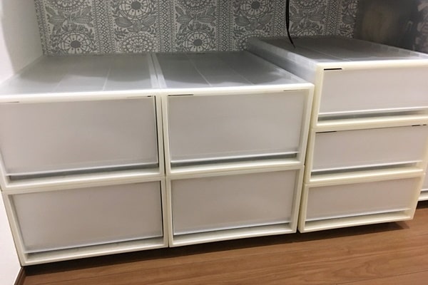 衣装ケースが少なくなったのはいいですが、中身が見えるのでちょっと見た目にうるさい。