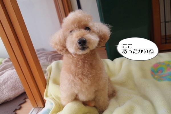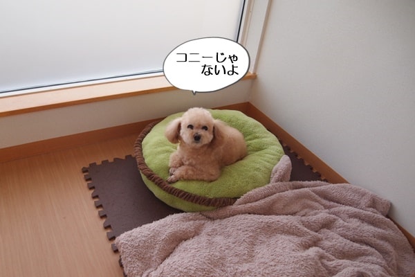 いつもコニーが寝ている座布団には、あんずちゃんが座っていました。