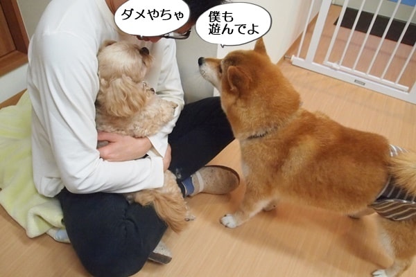 主人の登場に、テンションがおかしくなったドンちゃん。