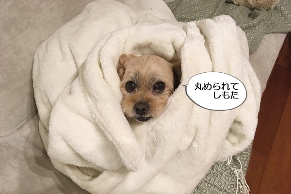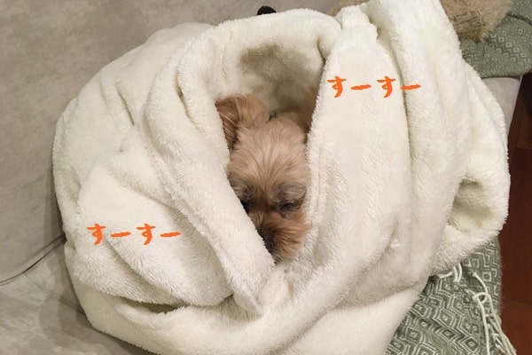 時々、ふと愛犬コニーのことを見ると、毛布で丸められていることがあります。