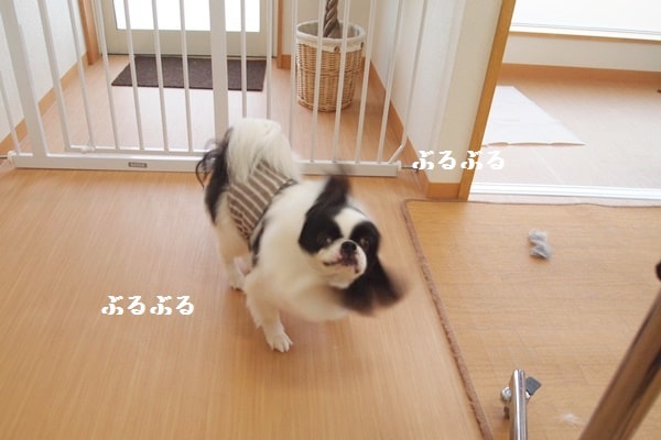必死で拭こうとするので、いつもバスタオルをエプロンの前で構えるようにしています。
