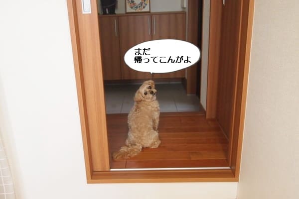 仕事以外で主人が外出すると、愛犬コニーは玄関の前でずっと待ってます。