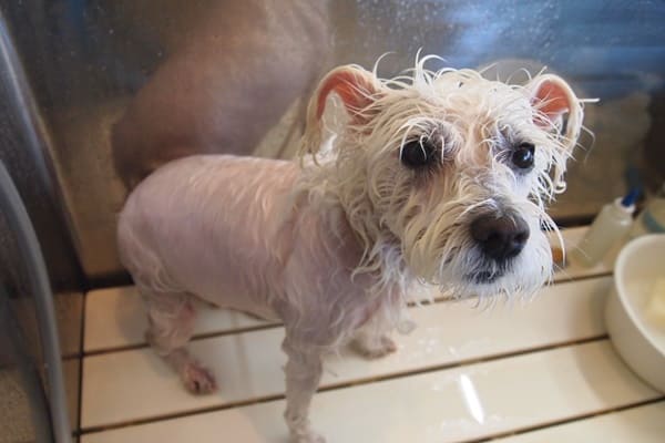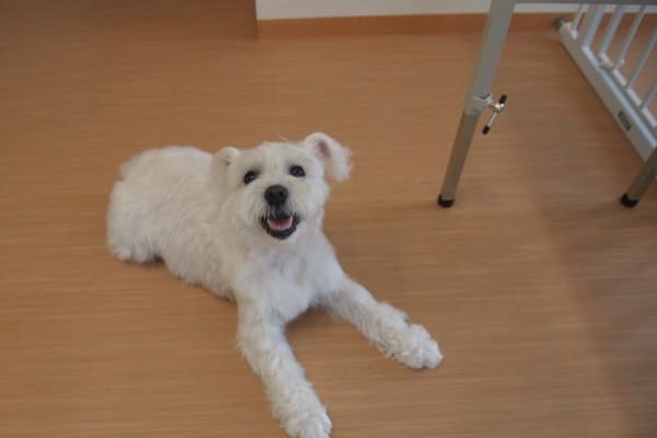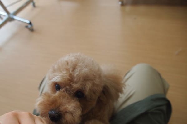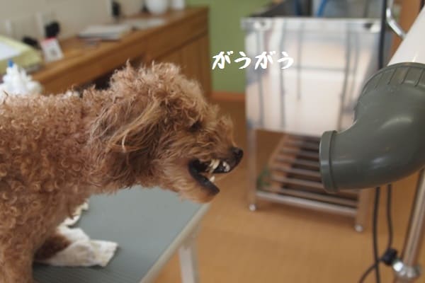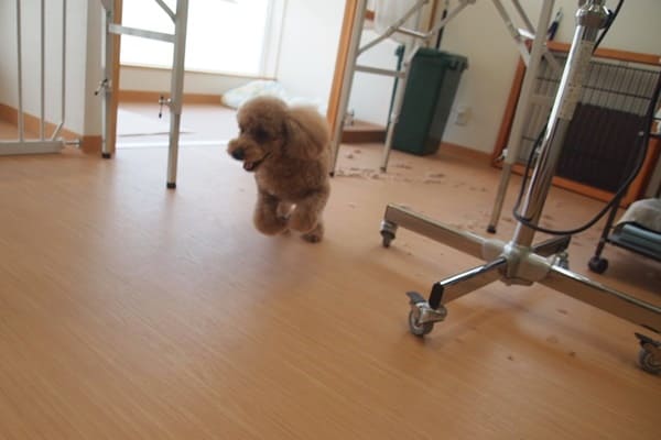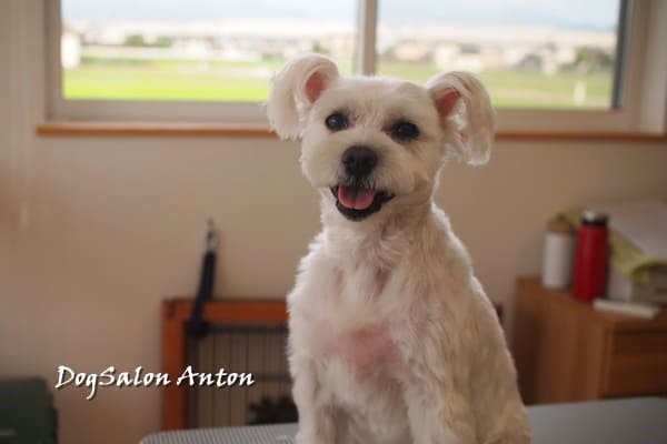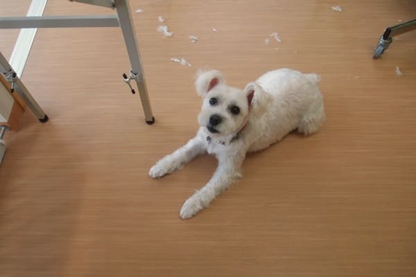 床の上に降ろすと元気いっぱいなのですが、トリミングテーブルの上ではとてもお利口さんです。