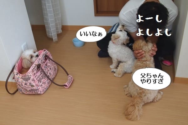 モコちゃんのカット中、フウちゃんは、決してバッグの中には入らないんだよね。