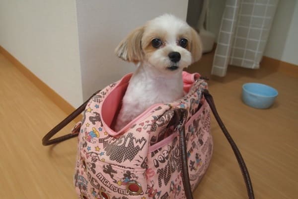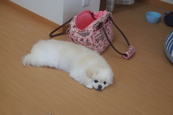 今日のモコちゃんは、トリミング中以外は、バッグの中に引きこもりっきり。