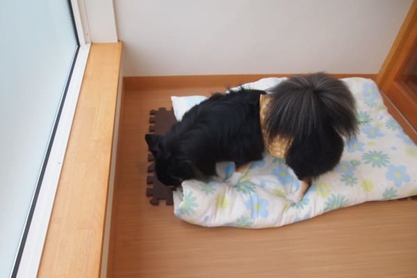 前脚の爪切りの時だけ小さな声で唸ってますが、聞こえないフリをしてさっさと終わらせます。