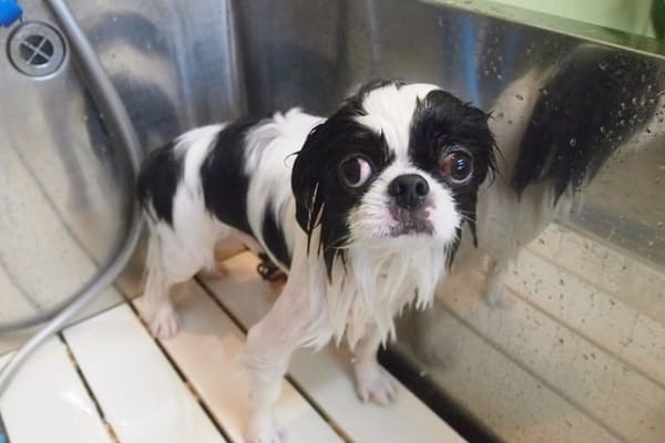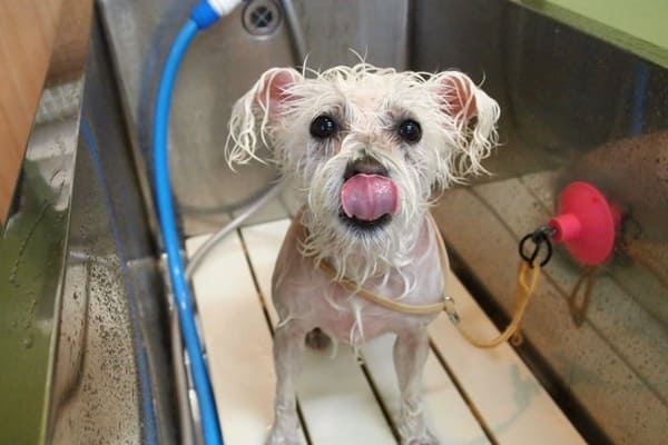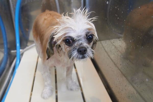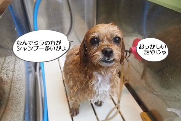 シャンプーは大人しいですが、シャンプー後にタオルを見せると興奮し始めます。
