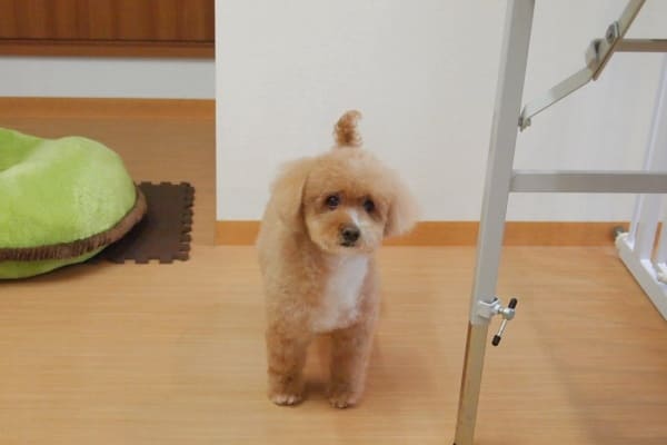 人間の美容院と違って、トリミングって訳も分からず立ちっぱなしなんですよね。
