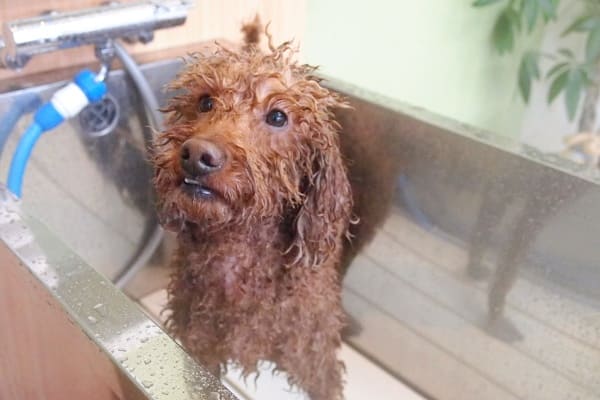 顔に泡を付けることも大丈夫、もこもこ洗っても大丈夫、でもお湯で流そうとするとすごく嫌がるんです。